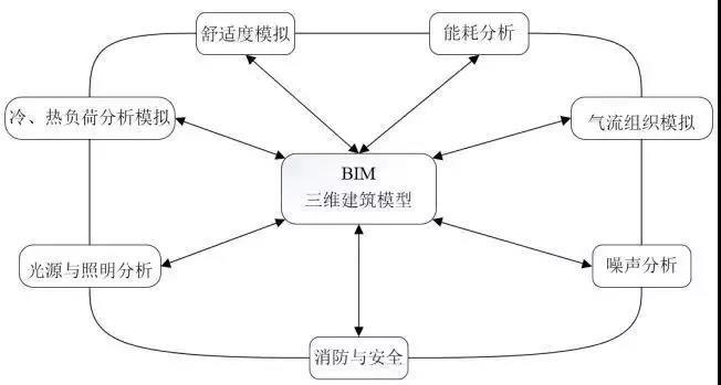 BIM貫穿于整個(gè)項(xiàng)目建設(shè)周期,裝配式建筑即包括設(shè)計(jì)、生產(chǎn)、建造、運(yùn)營(yíng)維護(hù)的全生命過(guò)程。裝配式建筑綠色化的過(guò)程需要一個(gè)技術(shù)平臺(tái)來(lái)完成方案設(shè)計(jì),諸如建筑抗震分析、建筑性能分析、建筑能耗分析、可視度分析、疏散分析以及舒適度分析等。BIM可搭建平臺(tái),將三維建筑模型導(dǎo)入綠色建筑設(shè)計(jì)分析軟件,模擬計(jì)算日照、自然采光與通風(fēng)、噪聲防治、室內(nèi)溫濕度等(如圖 1所示),促進(jìn)實(shí)現(xiàn)裝配式建筑的綠色化。
