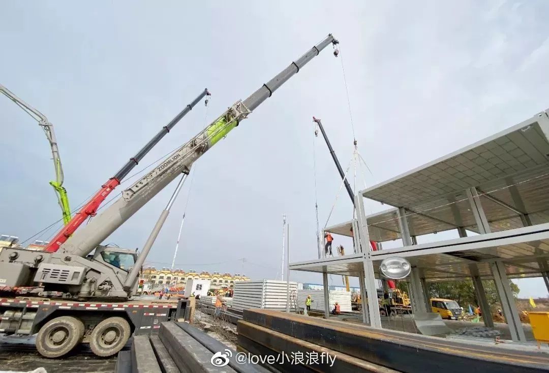 現場的施工周期非常短,除了地坪平整、基礎處理等濕作業外,現場其他的部分,如設備管線安裝、門窗安裝、室內設施安裝等等完全是干法施工,各工種交叉作業,與傳統建造方式相比,節約時間的同時,還減少施工和裝修垃圾約70%。