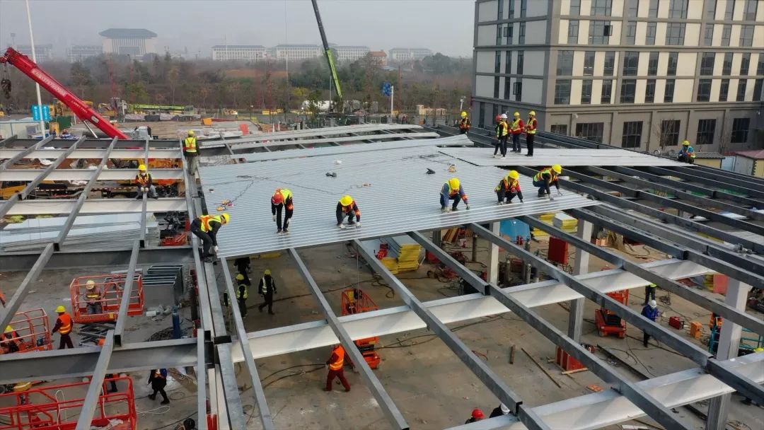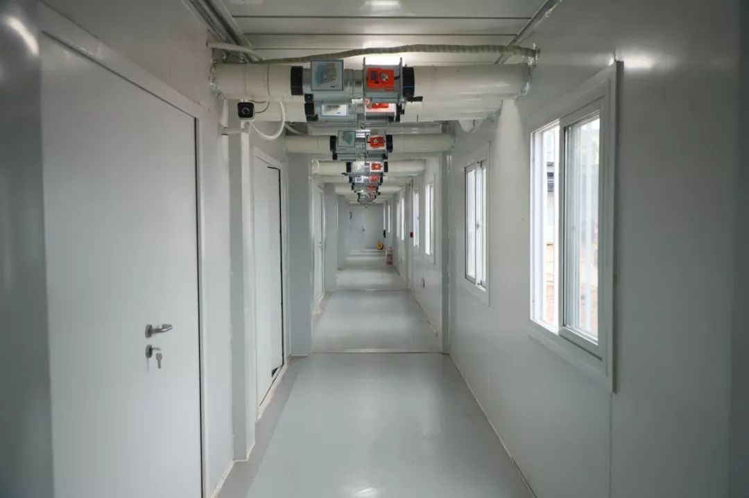 1月29日,醫(yī)護(hù)住宿區(qū)鋼結(jié)構(gòu)基本全部完工,并完成電力配套工程建設(shè),醫(yī)院全部通電。