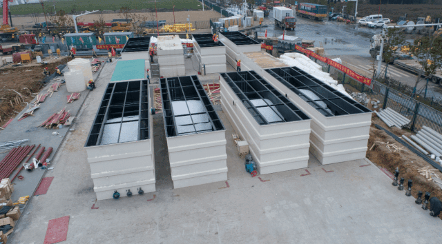2月2日,隔離區(qū)完成吊裝1514間箱式板房。