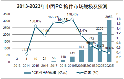 2013-2023年中國PC構件市場規模及預測