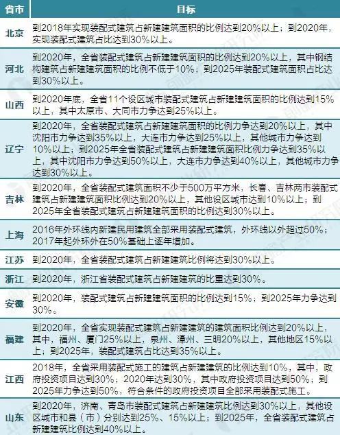 2017年3月23日,住房和城鄉建設部印發《“十三五”裝配式建筑行動方案》、《裝配式建筑示范城市管理辦法》、《裝配式建筑產業基地管理辦法》,《行動方案》明確提出:到2020年,全國裝配式建筑占新建建筑的比例達到15%以上,其中重點推進地區達到20%以上,積極推進地區達到15%以上,鼓勵推進地區達到10%以上。
