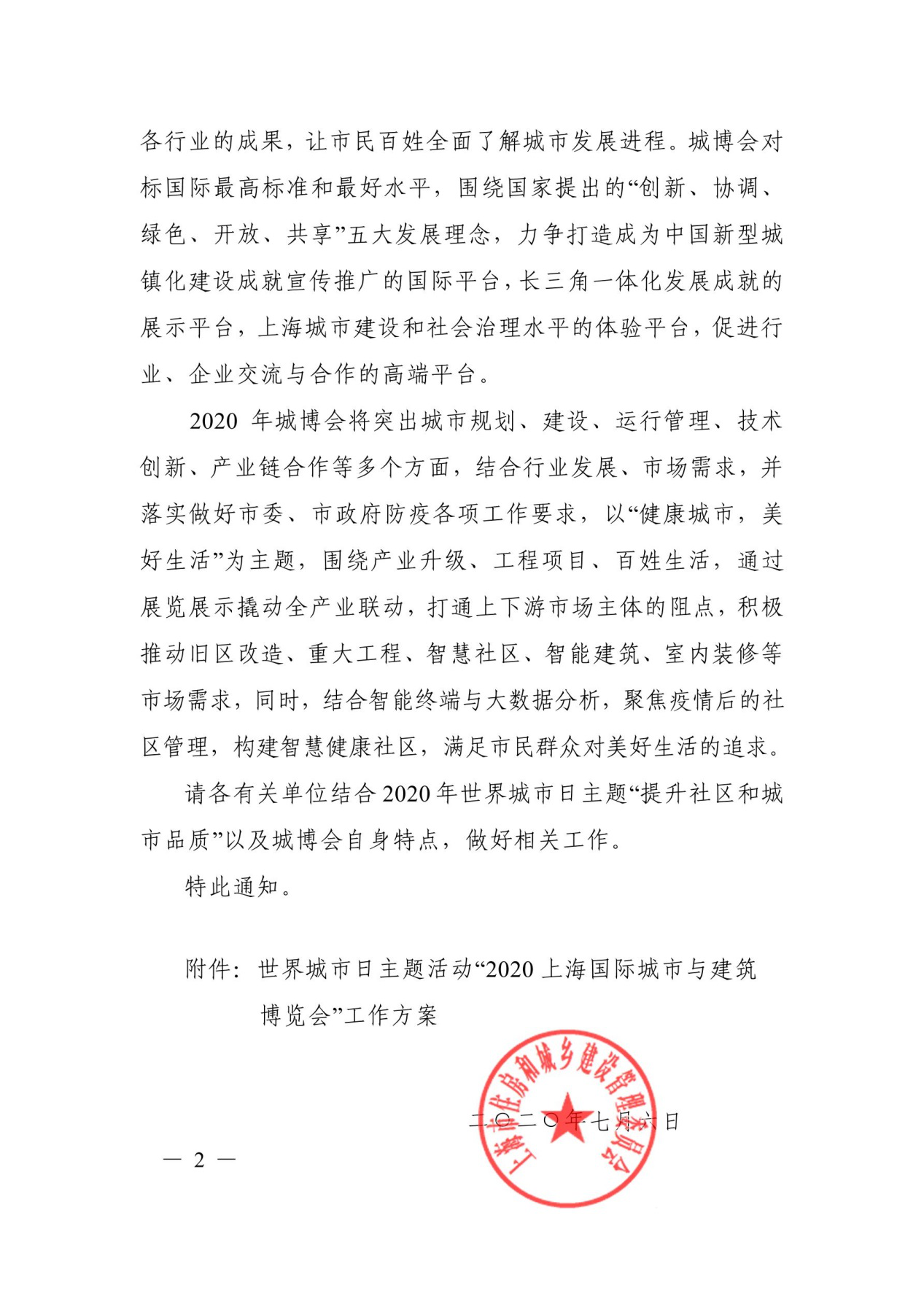 “2020上海國際城市與建筑博覽會”工作方案的通知,附紅頭文件如下: