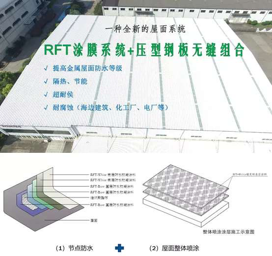 比如我們的瑞芙特金屬屋面防水系統RFT-WP01是公司的主打產品,瑞芙特防水系統RFT-WP01專業用于鋼結構屋面防水,本產品由源自美國的屋面防水膠凝劑(水乳狀)和縫織聚酯布多次涂刷而形成一個無接縫的涂層防水系統,該產品具有超強的粘結性能,卓越的耐紫外線功能,涂層永不開裂、起鼓、剝落等,其耐老化性能超過市場上任何同類產品。瑞芙特防水系統RFT-WP01還具有高彈性,抗拉強度高,防腐蝕性強,可用于具有特殊防腐防酸堿要求的工業廠房的屋面保護層,從而起到防水和防腐的雙重功效。