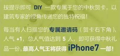 ![]() 小編代表BIC 上海國際建筑工業化展覽會主辦方, 提前祝各位業內小伙伴, 闔家團聚、溫馨康泰、 花好月圓、幸福美滿! 中秋快樂!!! ![]() 自古以來,“中秋”與“建筑”的淵源頗深, 古有嫦娥奔月, 廣寒宮里“中秋夜語寄相思,千里試問君安否?” 更有無數文人墨客寄情于山水建筑之間, 借樓閣庭院抒發思鄉之情。 那么,作為一個現代“建筑人”, 在這樣一個特別的節日里, 要如何運用 建筑人的獨特視角、建筑人的專業身份, 向家人、朋友、同事及合作伙伴 傳遞一份屬于您的建筑情懷呢? BIC 中秋特制, 當 “建筑” 邂逅 “中秋” 系列賀卡, 讓建筑圈的朋友們告別傳統送祝福的方式, 親手DIY一款專屬于建筑人的中秋賀卡, 更重要的是,這份祝福可能來自 “世界各地” 噢~ ![]() 將賀卡轉發至朋友圈,聚集人氣, 即可獲得中秋禮品 更有大獎 i-Phone7 豪禮相送! ![]() 極賦創意的你,怎能錯過在朋友圈大顯身手的機會? 長按下圖二維碼,即可體驗! ![]() ![]() ![]() 沒時間解釋了,想要一部 iPhone 7 ! ![]() 每當有人掃描您的專屬邀請碼(賀卡右下角), 人氣+1,總人氣值達到5人,即可獲得中秋禮品一份, 最高人氣王將獲得 iPhone7 iPhone7 iPhone7!!! 重要的事情說三遍! 一棟建筑,一種信仰, 一份堅持,一段情懷, 今年中秋, 來為您的建筑夢想挑選一張合適的賀卡吧, 讓建筑為您代言,替您發聲, 凝聚屬于建筑人的氣質與靈魂! ![]() |