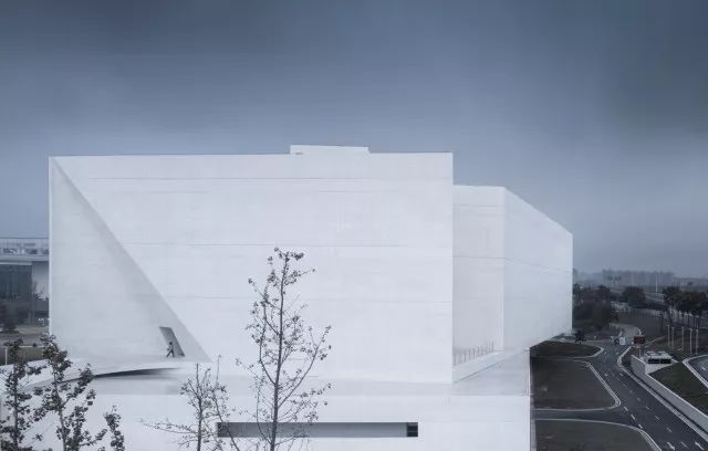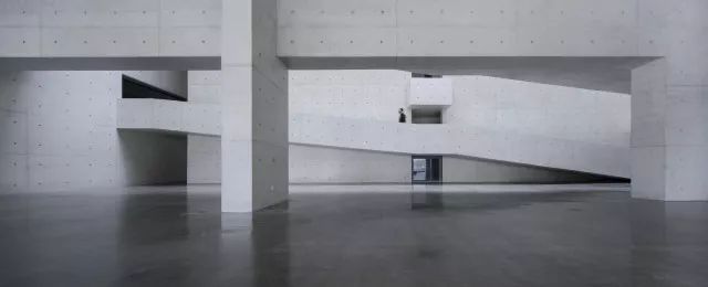 主體是由白色清水混凝土一次性現澆而成,無論墻體,頂棚、地面或室外廣場、平臺、棧道都只使用清水混凝土一種材料,做法本身十分具有超越性。