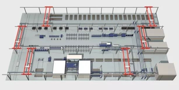 一期規劃三跨鋼結構廠房,全自動綜合墻板生產線一條、固定模臺生產線一條,同時規劃鋼筋加工車間。