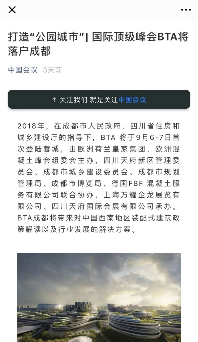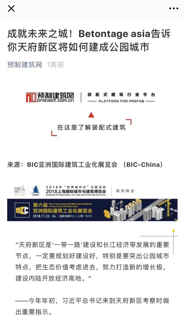四川天府新城作為可持續(xù)發(fā)展的國際級新區(qū),受到了全國各界的關(guān)注。近日,為規(guī)劃好新區(qū),建設(shè)美麗宜居“公園城市”。四川天府新區(qū)管理委員會(huì)攜手亞洲國際建筑工業(yè)化展覽會(huì)(BIC),于2018年9月6-7日在四川在成都天府新區(qū)秦皇假日酒店隆重召開2018亞洲國際建筑工業(yè)化峰會(huì)(成都),簡稱“BTA成都”。