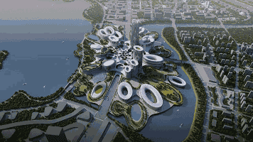 扎哈·哈迪德建筑師事務(wù)所設(shè)計(jì)“獨(dú)角獸島”動(dòng)態(tài)示意。圖片來(lái)源于天府新區(qū)成都管委會(huì)