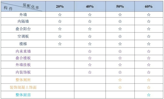 表2. 裝配式住宅項目裝配化率與預制構件的對應關系