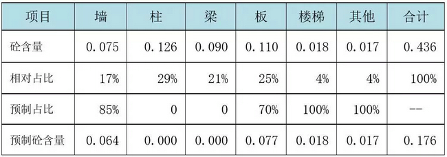 表3. 混凝土構件占比關系(以40%裝配率為例)