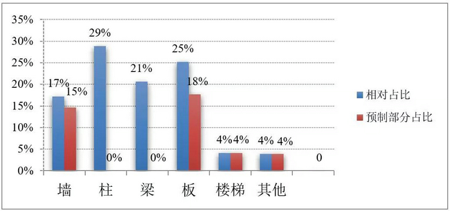 圖2. 柱狀對比混凝土和預制混凝土對應占比